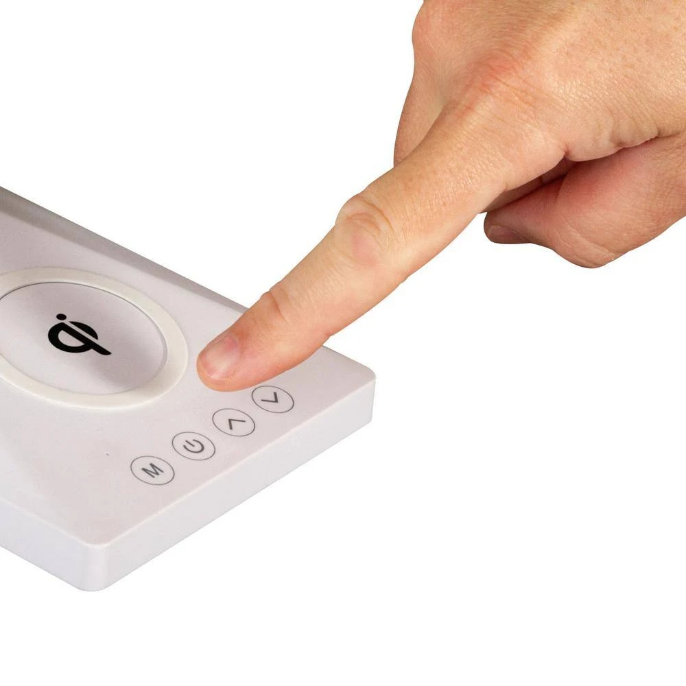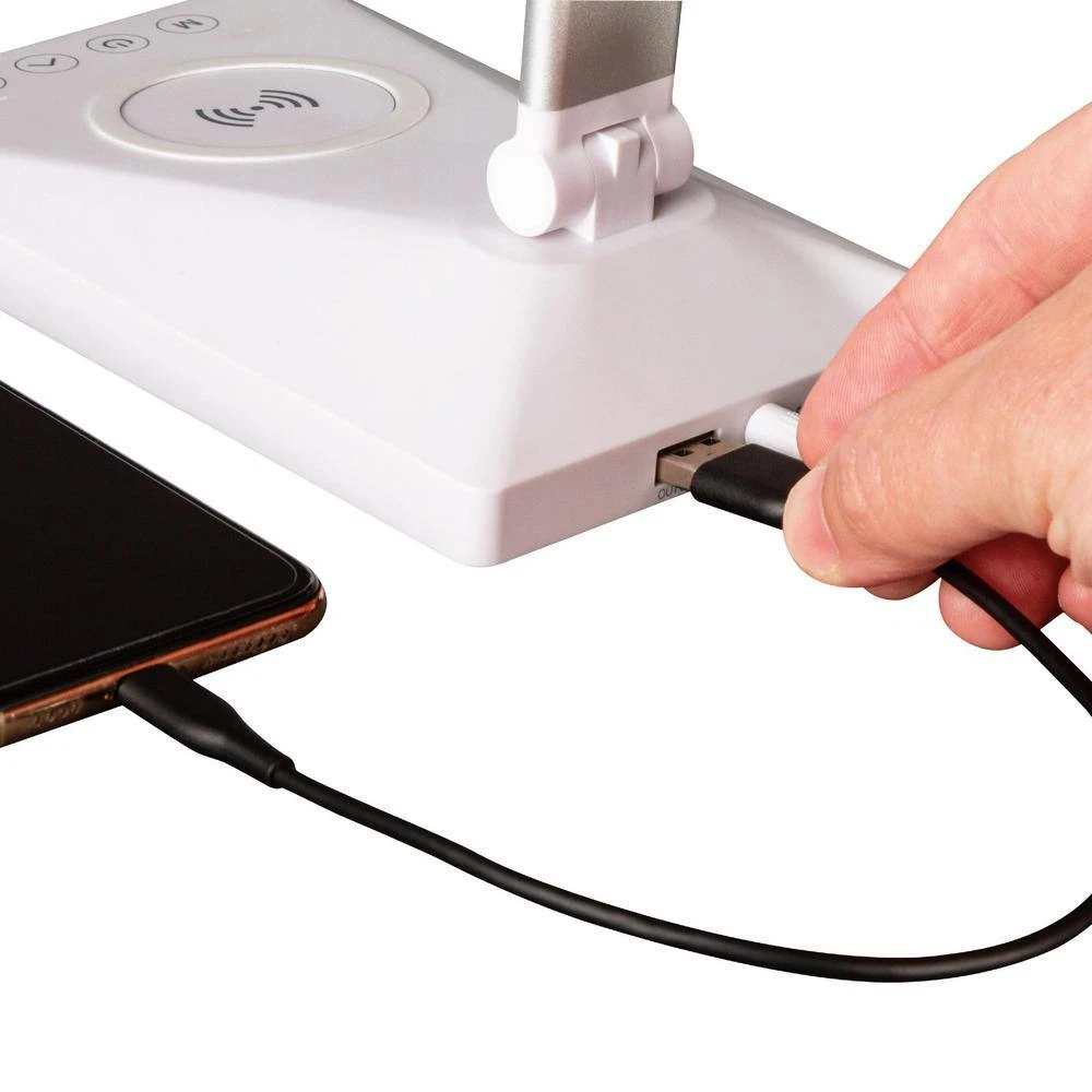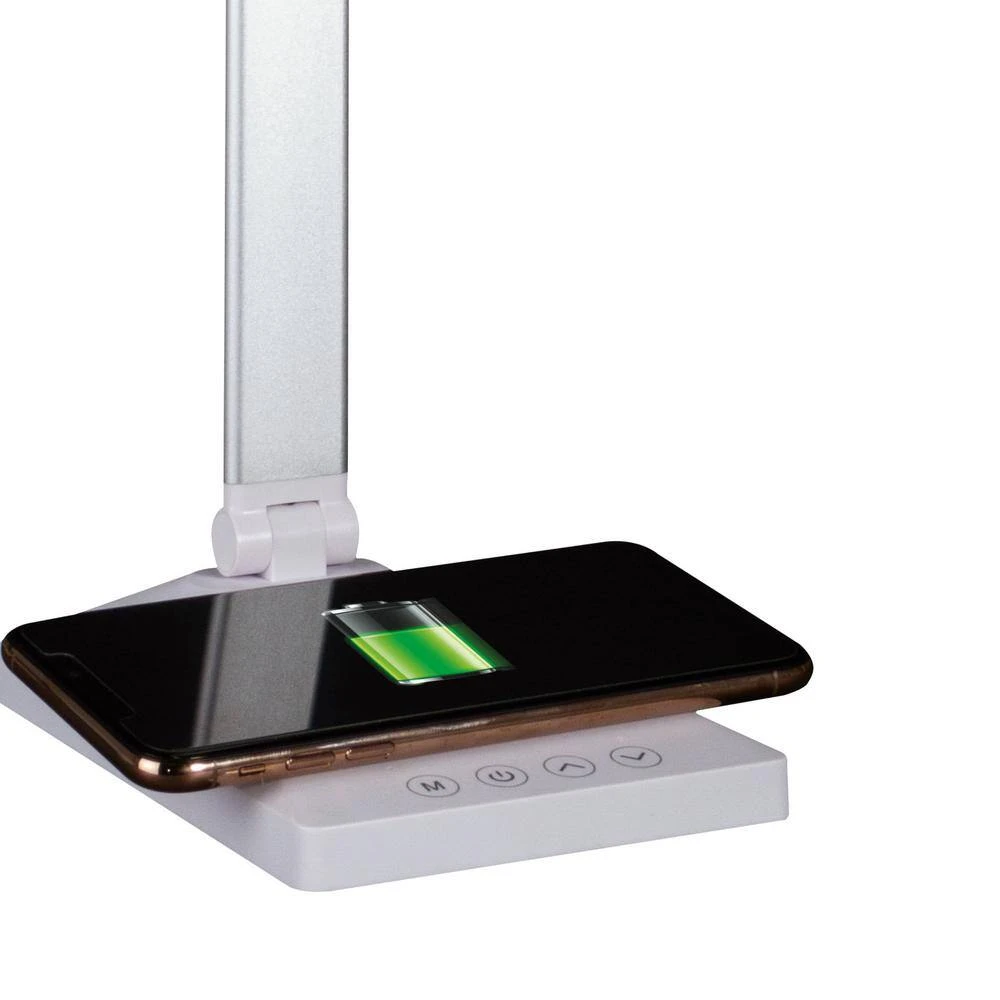 Give your space a total lighting upgrade with the OttLite Entice LED Desk Lamp with Wireless Charging. Part of the OttLite Wellness Series, this feature-packed folding lamp helps reduce eyestrain with next generation ClearSun LED technology – as close to natural-daylight as you can get. The Entice also includes 2 additional color temperature modes (warm white and bright white). Easily adjust the brightness with the up and down buttons. With 2 points of articulation on the sleek aluminum arm, you can easily place the soothing, low glare illumination right where you need it. And, to keep your devices fully charged use the Qi-wireless charging pad or the 5-Volt, 2.1 Amp USB port.