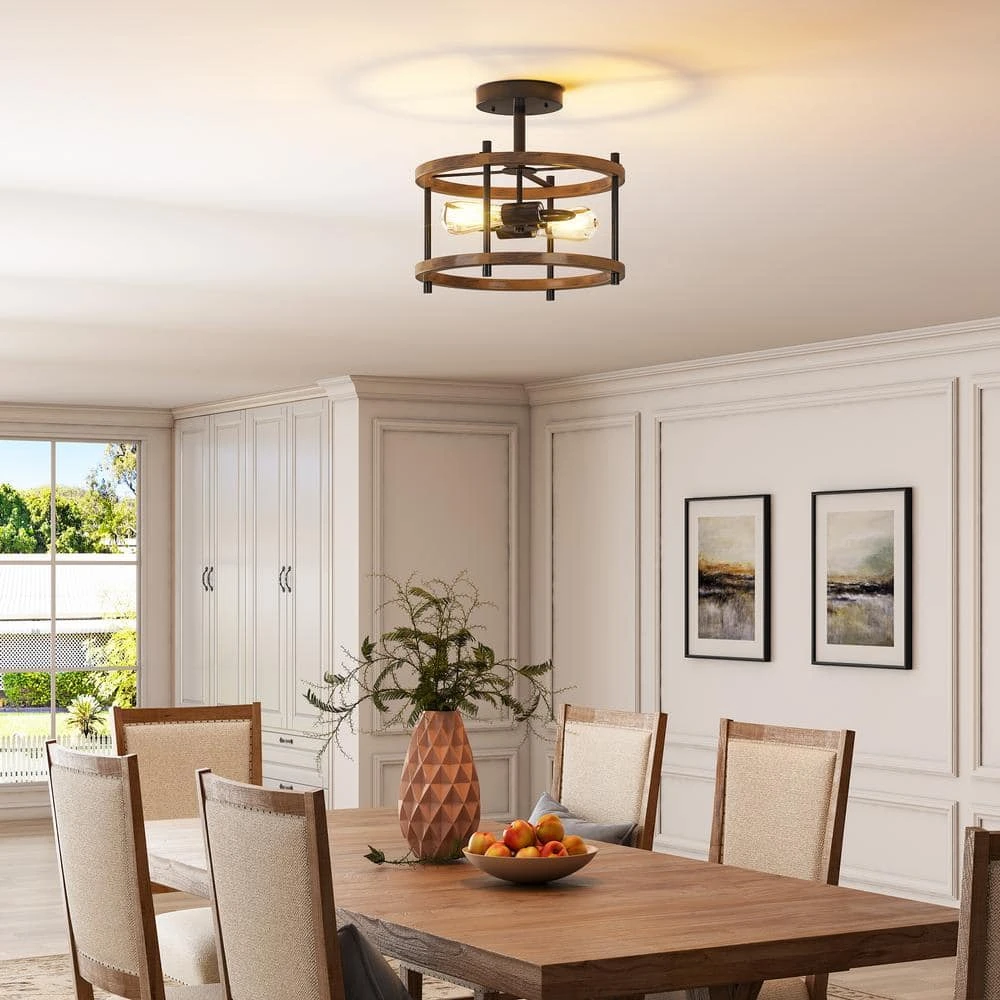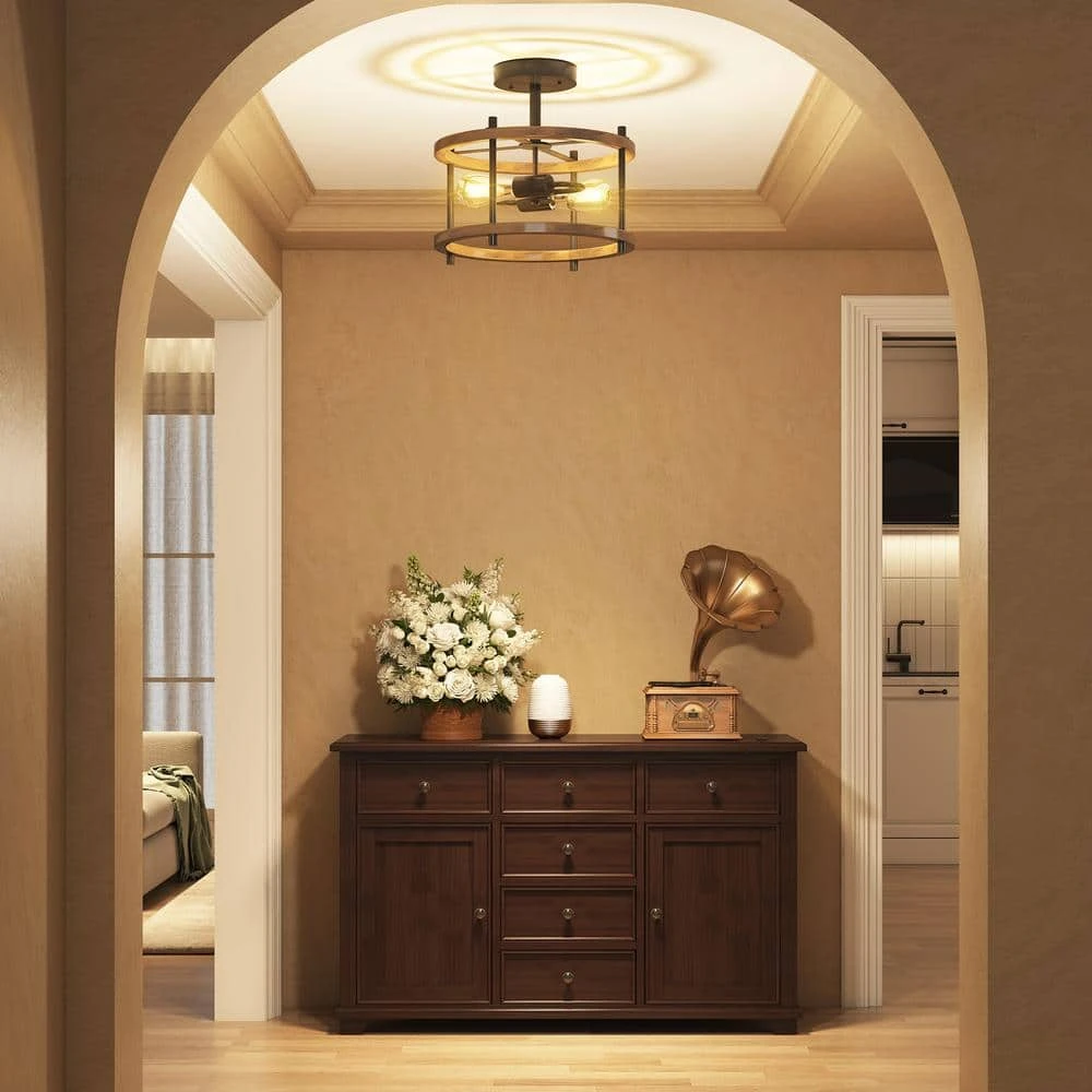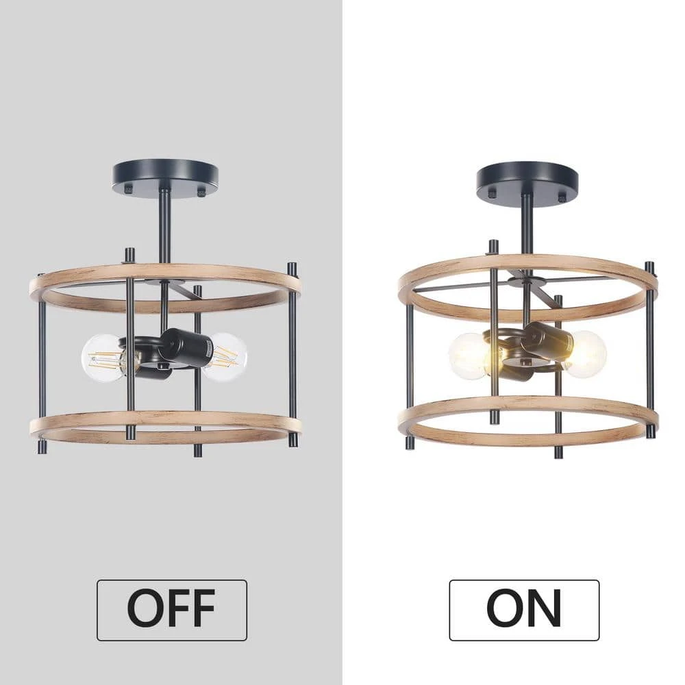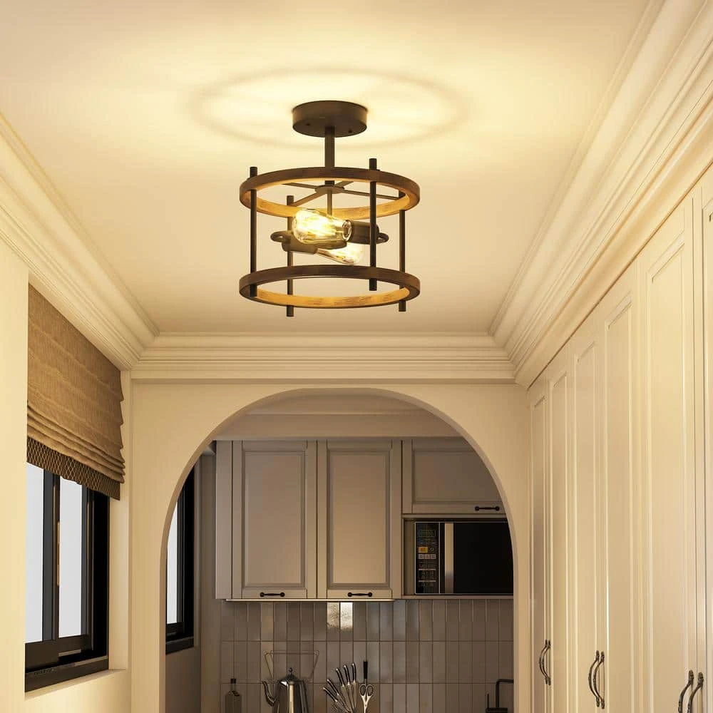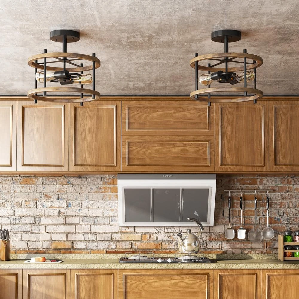 - Versatile application: shade diameter 12.8 in. W x 12.8 in. D x 12.8 in. H, the very affordable price makes it a good choice for homes and commercial areas with durability, this walnut 2-light flush mount ceiling light is perfect for dining room, bedroom, kitchen, living room, laundry room, hallway, entryway etc. add more vintage elegance and charm to your home