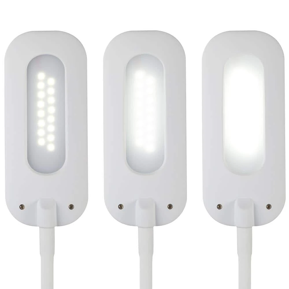 Bring great lighting into small spaces with the OttLite Flexible Soft Touch LED Clip Lamp. with the spring-loaded clip, attach securely to tables, bookshelves, and more. The super flexible neck adjusts the height from 4 in. to 18.5 in. to direct the clear, crisp natural daylight ClearSun LED illumination right where you need it. Proprietary ClearSun LEDs reduce glare and eyestrain for hours of focused, productive time. This OttLite lamp features a soft-touch texture on rubberized neck and shade. Easily adjust the 3 brightness settings with touch activated controls.