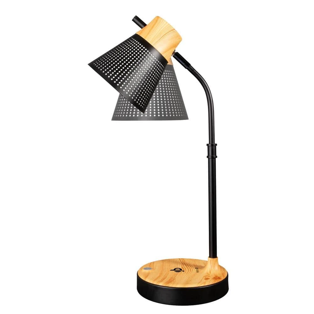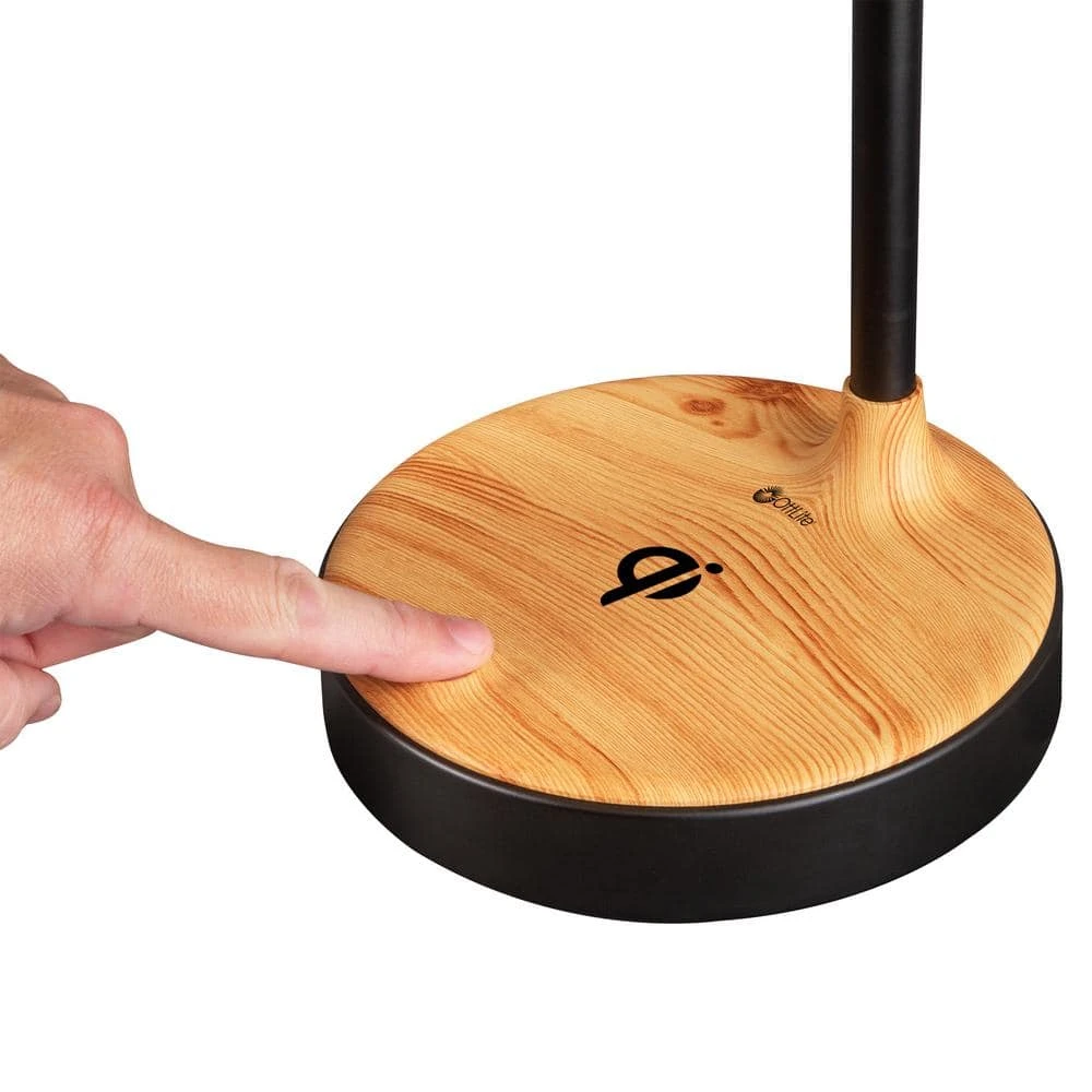 Create a healthy workspace with the OttLite Wireless Charging LED Table Lamp. Big on style and innovation, this metal lamp with faux wood-grain accents offers 2-ways to charge your devices. Charge your Qi-compatible device with the powerful 10-Watt charging pad or use the 5-Volt, 2.1 Amp USB port to fully and quickly charge phones and tablets. Providing a healthier way to see, OttLite’s exclusive ClearSun LEDs reduce eyestrain by 51% and provide crisp natural daylight illumination with a color rendering index of 97. Control the 3 brightness settings and 3 color modes with the convenient touch switch. Adjustable shade features a rounded diffuser to evenly disperse the crisp, clear OttLite illumination.