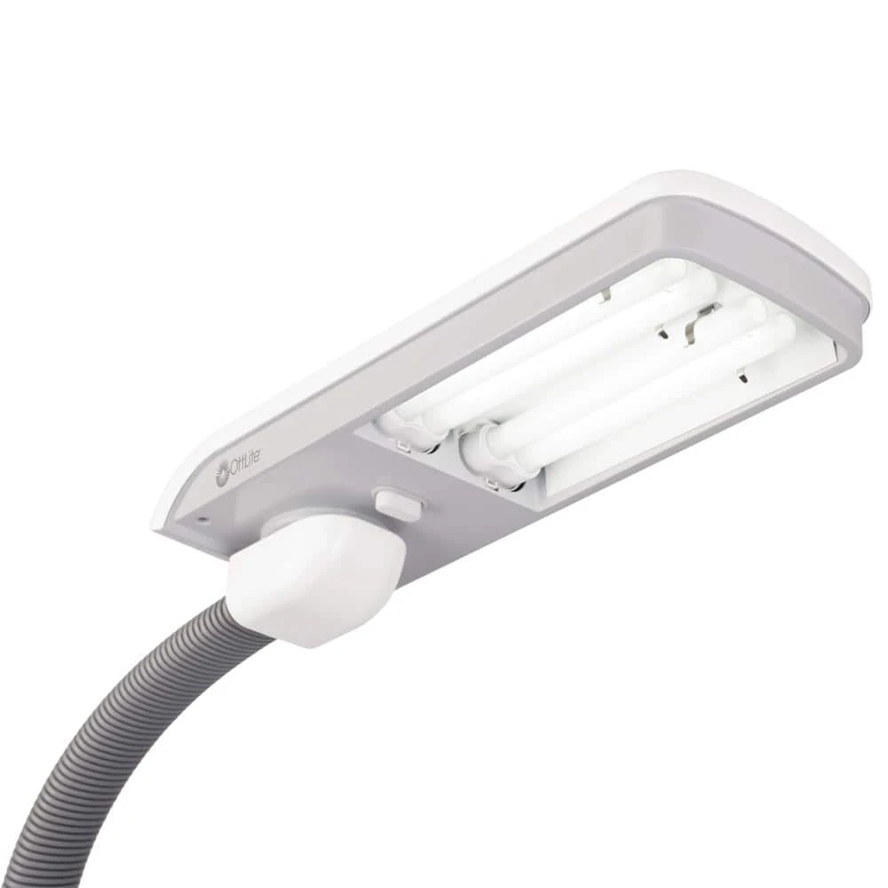 The 36-Watt Pivoting Shade Floor Lamp is OttLite’s most powerful floor lamp ever Illuminate your entire workspace with its two Super Bright Natural Daylight 18-Watt tubes. Features include a 90° pivoting shade, flexible neck and two brightness settings, providing a wide range of lighting options. OttLite allows you to see details clearly and colors accurately, helping you do what you love, longer.