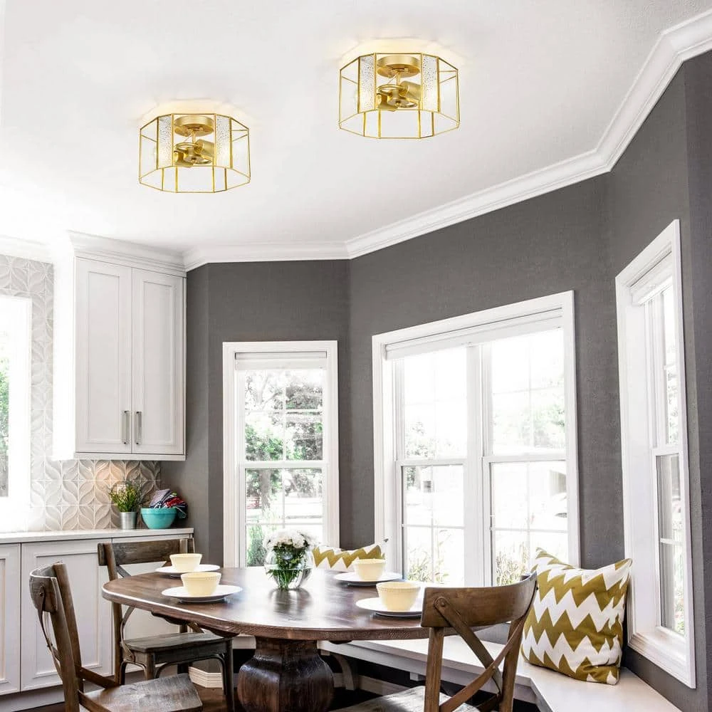 This elegant classic modern semi flush Light from the Bailey collection adds form and function to your home. The amazing glass provides ample illumination and an inviting light. The simple clean lines make this a beautiful lighting fixture that will still be stylish years from now. The drum shape light fixture features a metal frame with a rich painted gold brushed finish. This ceiling light based on the traditional design adopts the modern element. The manual made ring shape comes in staggering and completely showing the creative charm of modernity. Combining contemporary and industrial elements, this transitional light fixture is coated in high-quality finish, featuring a strong cast iron base in a solid structure for a minimalist life style. There is always a suitable model fits you and your house in TRIBESIGNS lighting products.