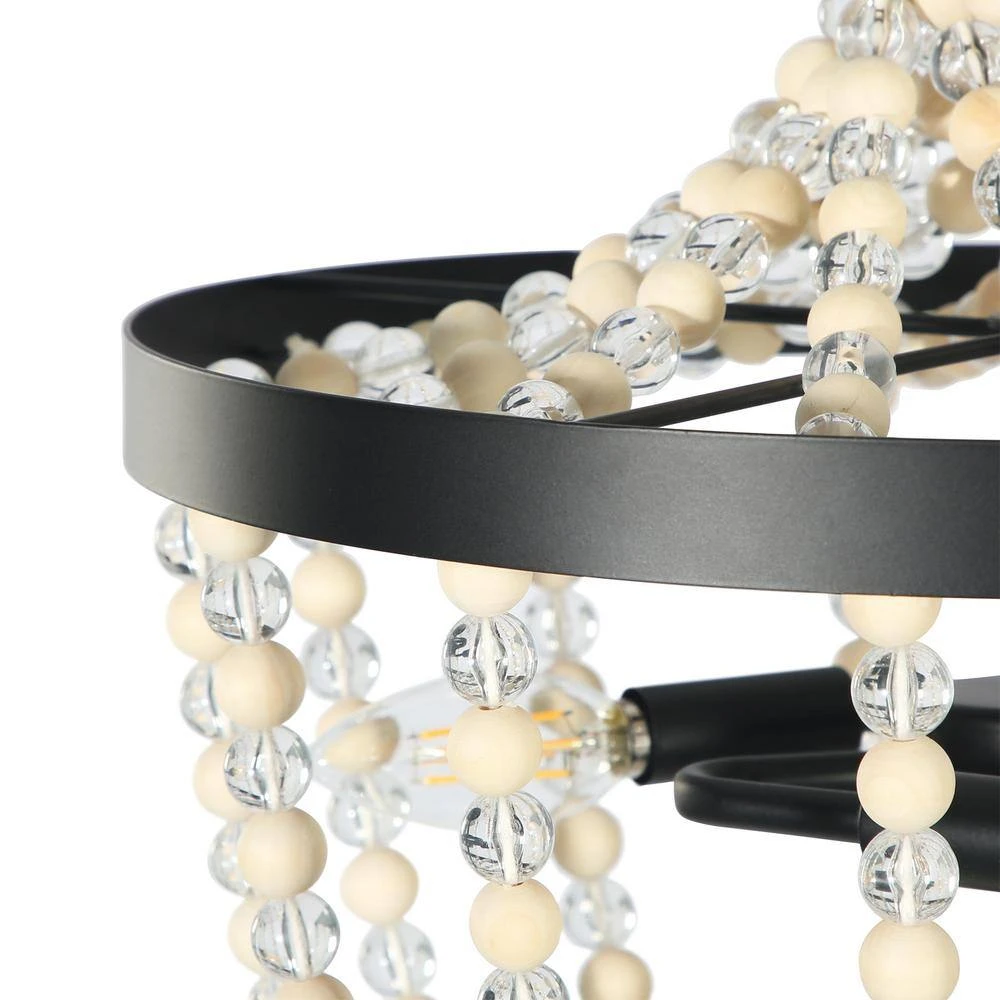 - Eleganty design, with smooth black metal base, beige wood beads and clear crystal beads, features a sleek and edgy design