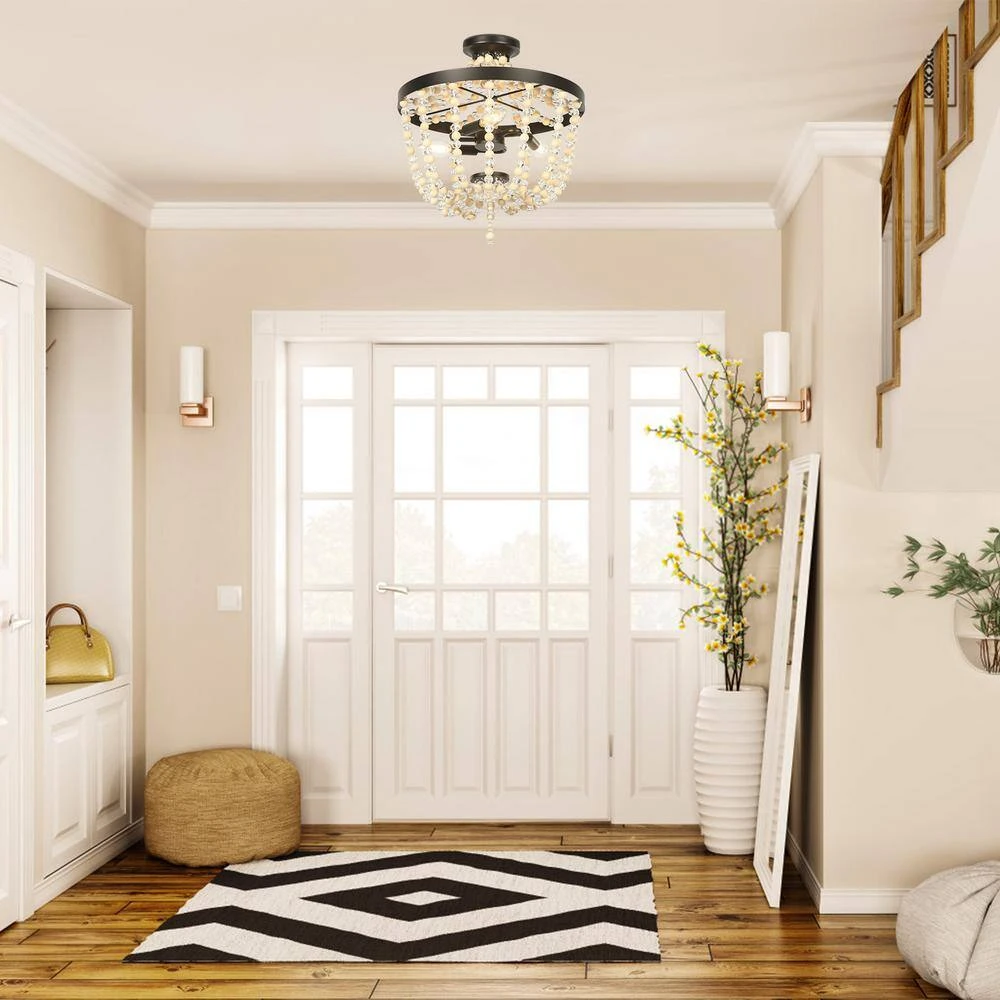This elegant classic modern semi flush Light from the Fanny collection adds form and function to your home. The bowl shape light fixture features a metal frame with a rich painted black brushed finish. This ceiling light based on the traditional design adopts the modern element. The crown shape comes in staggering and completely showing the creative charm of modernity. Combining contemporary and industrial elements, this transitional light fixture is coated in high-quality finish, featuring a strong cast iron base in a solid structure for a minimalist life style. There are a variety of Bailey collection ceiling mount lights for you to choose from: 4/3/2/1-light, gold/black/white/silver color, etc.