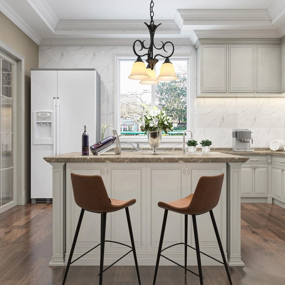 - Timeless design: with matte black finish, its frame is sure to draw the eye with elegant curves and boasts a solid neutral color for a look that won’t easily clash with your current color palette, this luminary features 3 lights, each highlighted by a frosted glass bell shade, casting the light to the whole space