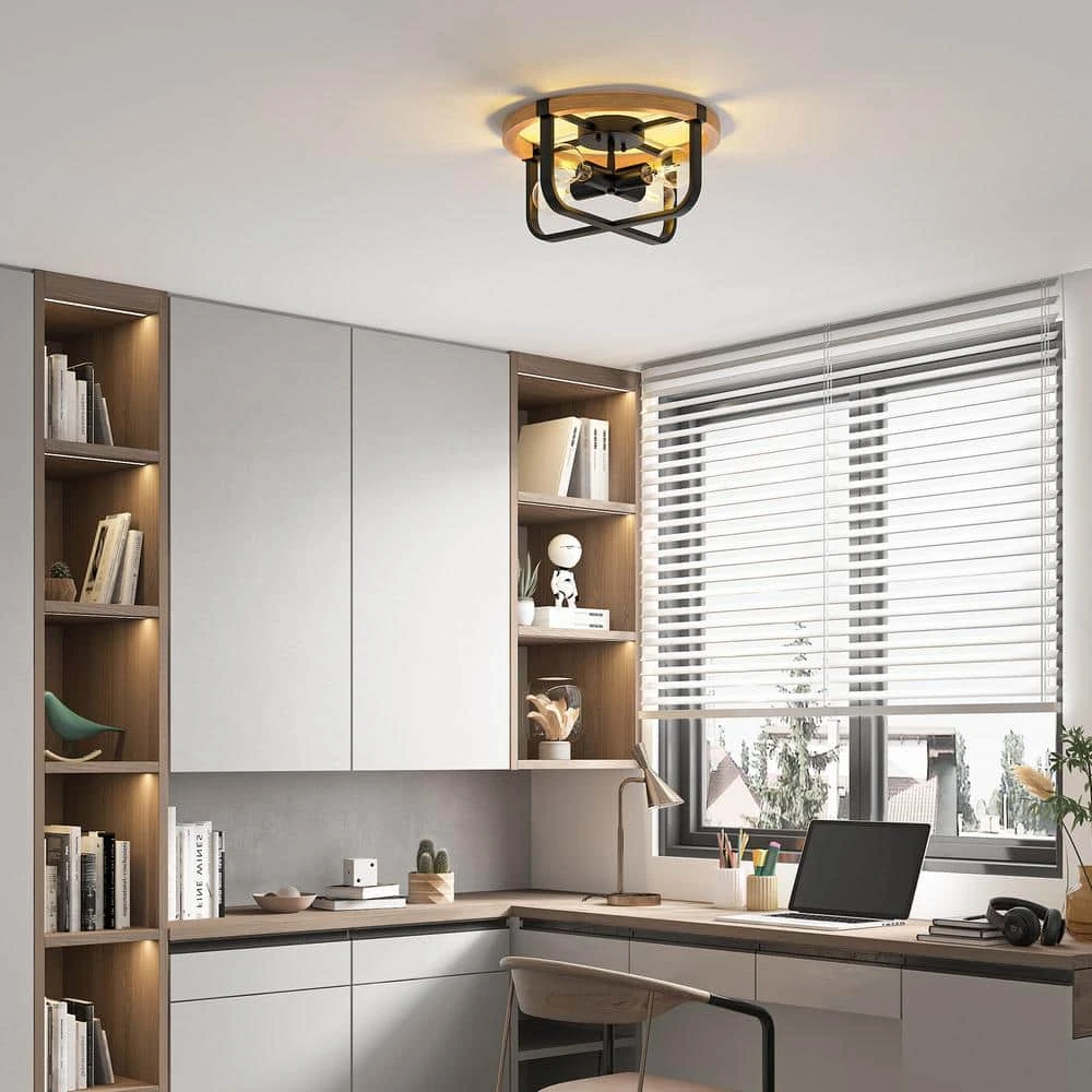 - Elegant design: with smooth black metal base, high quality natural wood structure, features a sleek and edgy design, the light fixture dimensions is 15 in. W x 15 in. D x 6.25 in. H