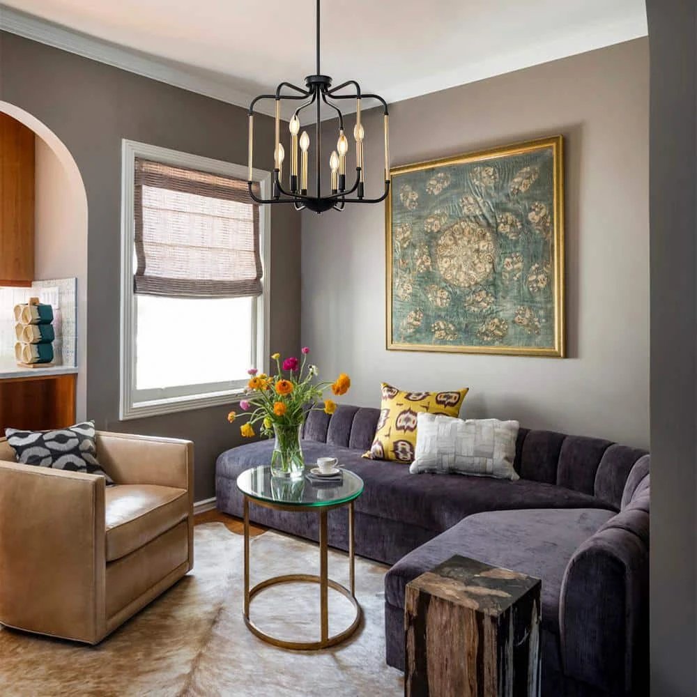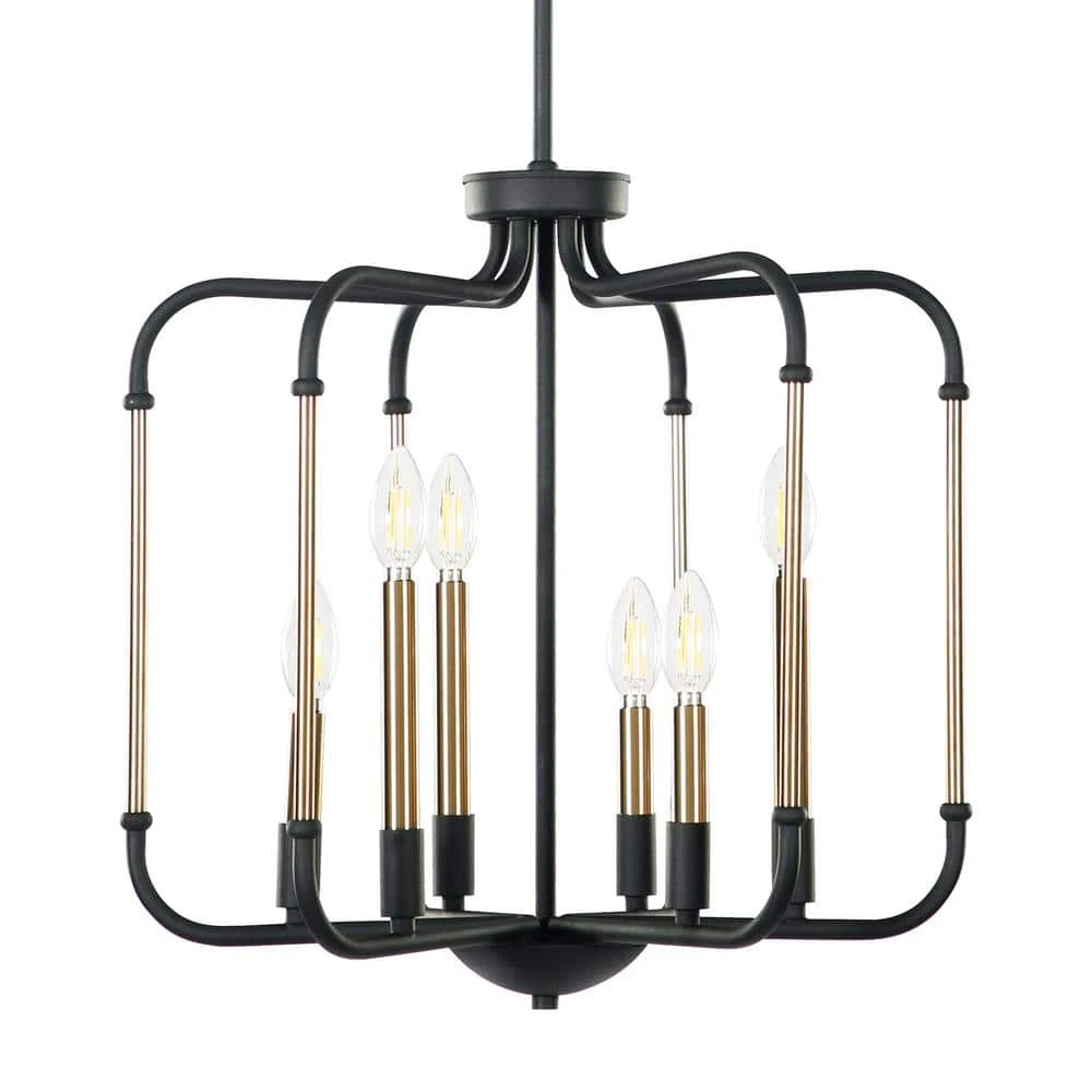 The chandelier serves as both an excellent source of illumination and an eye-catching decorative fixture. Mid-century modern design and contemporary style combine in this 6-light kitchen island pendant. Crafted of steel in a new bronze and matte black finish, this fixture is a successful experiment in movement and tone. Simple candelabra bulbs and a discreet center column keeps the attention on the collection’s dramatic duality.