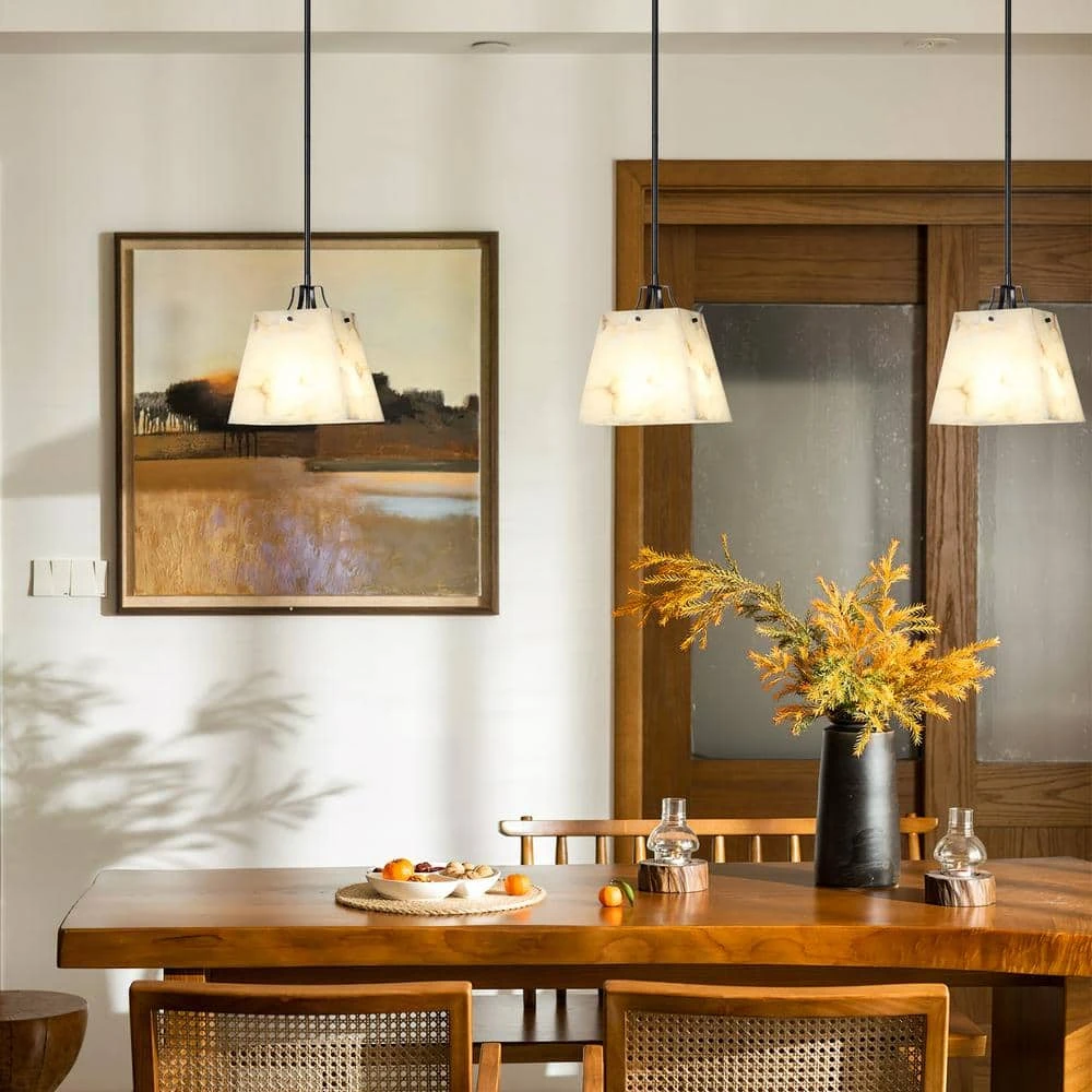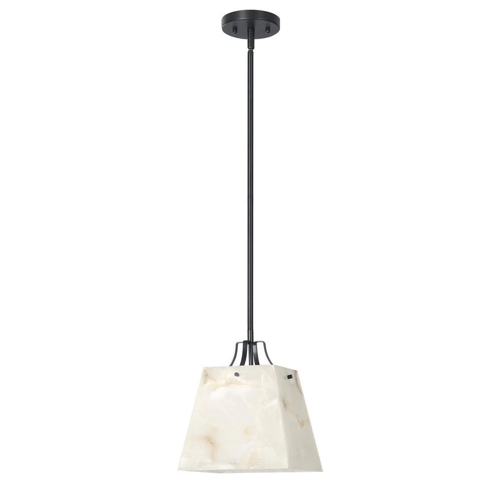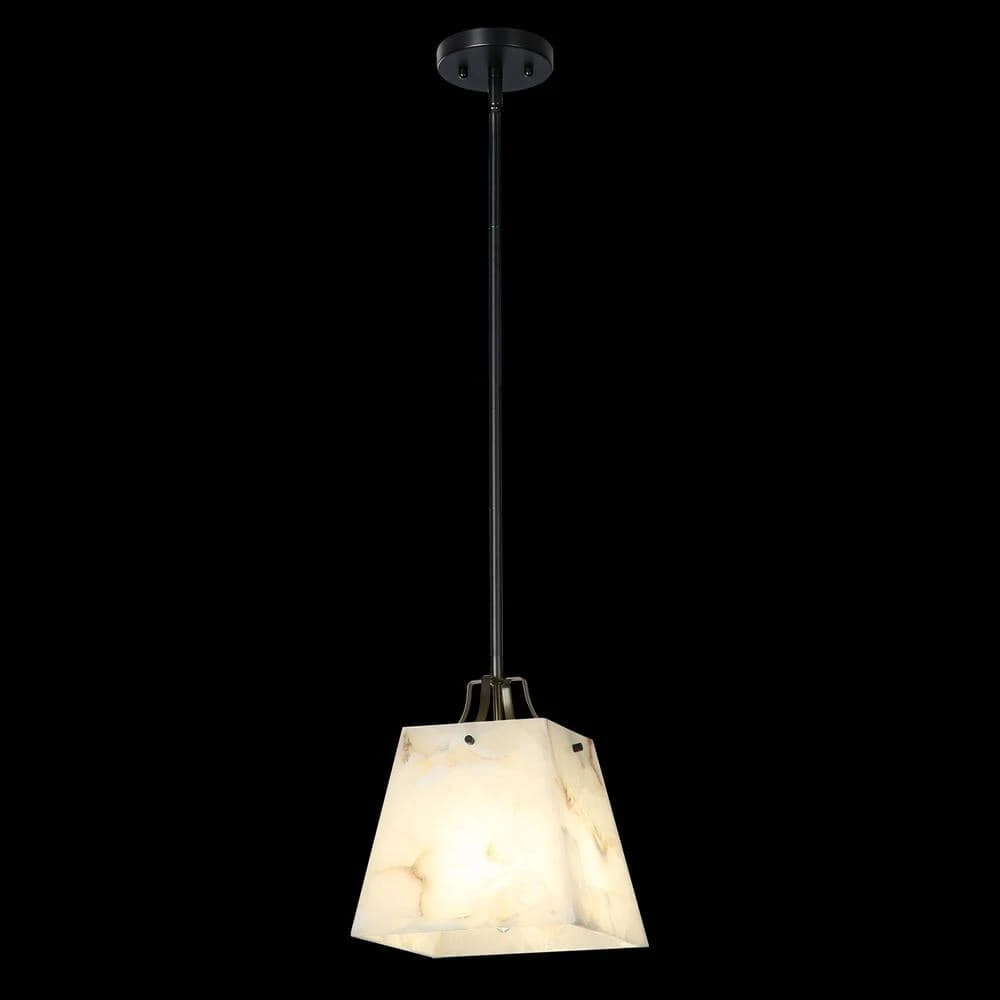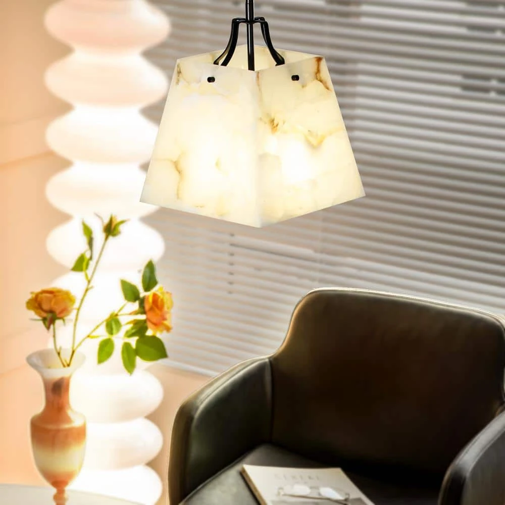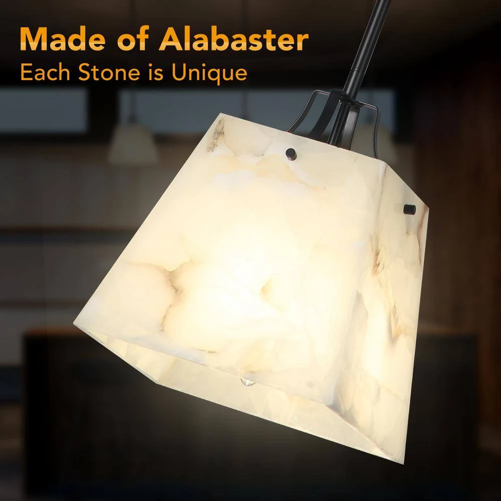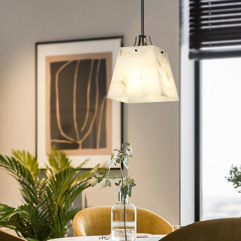 Enliven your home with this contemporary pendant. Beautifully hand-crafted in real Alabaster, this pendant is 1 of a kind. With its handsome and handy trapezoid shape, this modern alabaster pendant light will brighten any room. Hang alone to add gentle illumination to the bedroom or living area or use in multiples to brighten a kitchen island or counter.