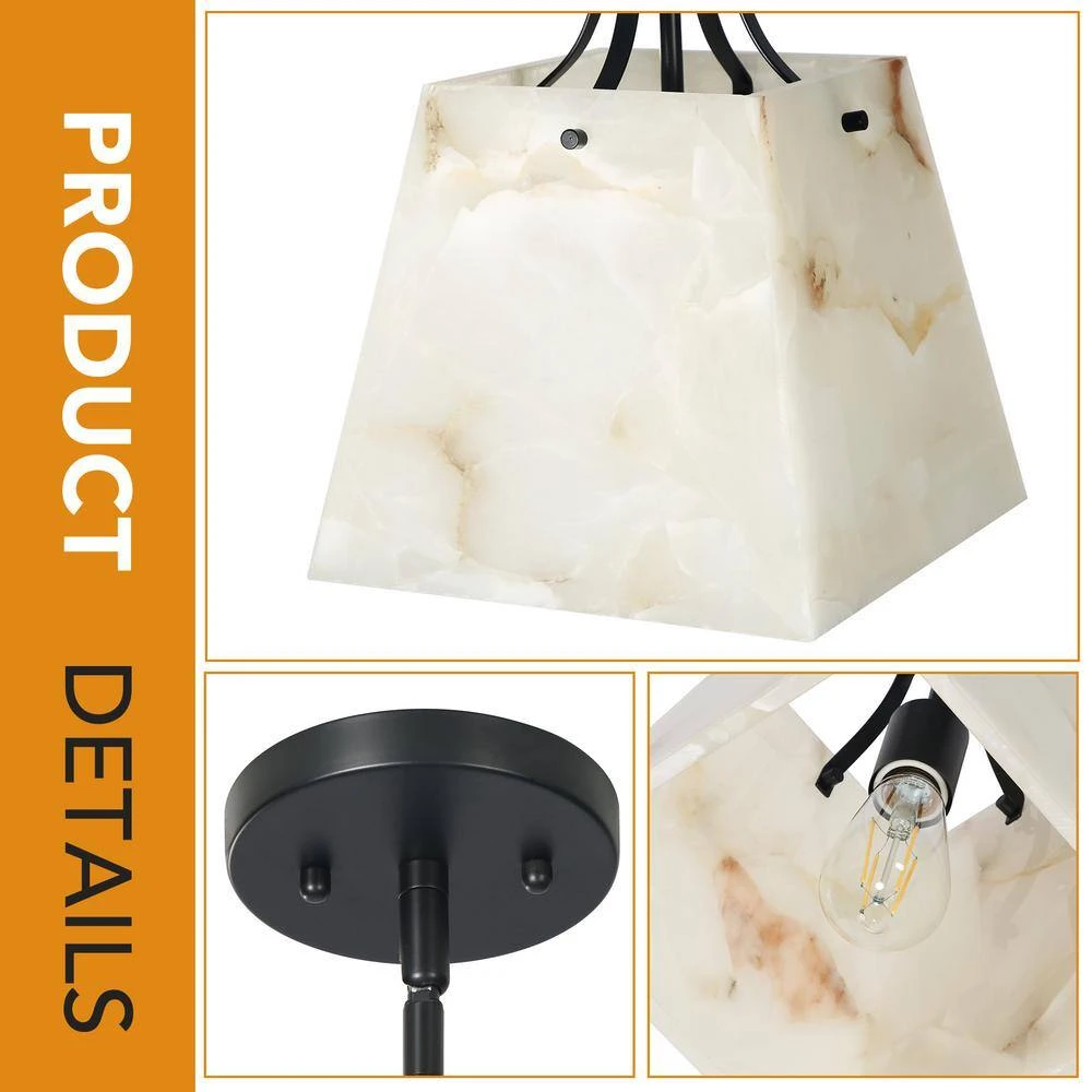 - High-quality material: boasting classic elegance, this contemporary mini chandelier is accented by a sleek frame in matte black finish and designed with a natural marble shade which makes this geometric fixture far more stunning than the picture