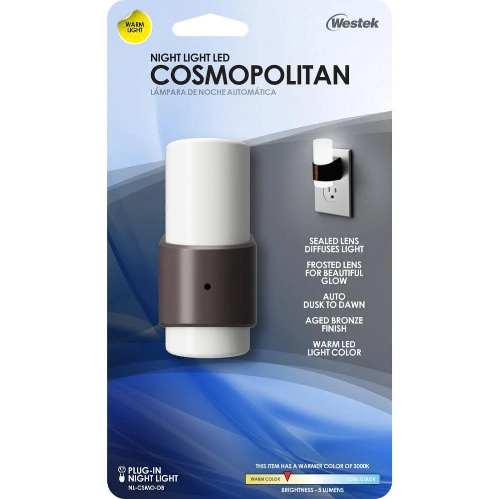 The Westek NL-CSMO-DB Cosmopolitan Automatic Light is the perfect night time lighting solution. This device automatically turns on in low light providing 2 lumens of warm illumination through a sealed lens. Great for hallways, entryways, basements, bathrooms and more. Designed with a transitional style and bronze finish that works with any decor. AmerTac manufacturing brands offer complete lines of distinctive decorative home accent products that include trend-setting wall plates, money saving LED night lights, innovative under cabinet lighting and LED battery operated lights. We also offer utility product lines including energy-saving timers, dimmers and lighting controls, as well as an extensive offering of consumer electronics accessories for the home and office.