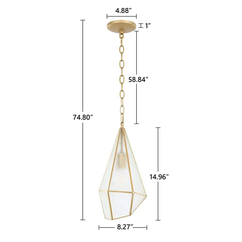 - Dimensions: overall measures 8.3 in. W x 74.8 in. H, fixture: 8.3 in. W x 15 in. H, this geometric pendant light is an ideal choice for hallways, foyers, entryways, or kitchens