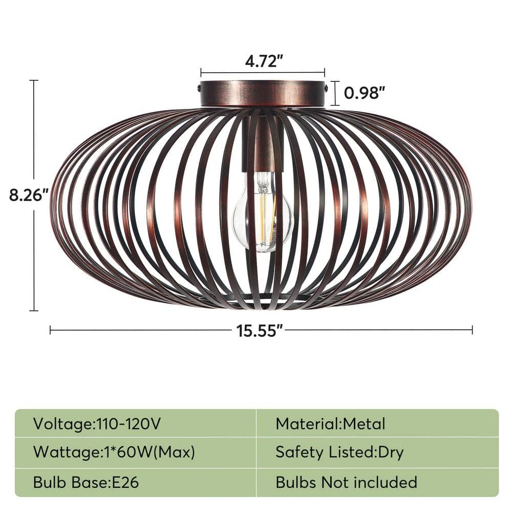 Add pleasant and inviting overhead lighting to your space with the warmth and charm of this 15.5 in. Modern Farmhouse Semi-Flush Mount Hanging Lamp by TRIBESIGNS WAY TO ORIGIN. Designed with a metal lantern canopy in a bronze finish, this drum-shaped ceiling light offers a style that’s at once rustic and modern to update your interior decor. A great choice for hard wiring into the ceiling above your dining table, in the middle of your living room or to welcome guests in your entryway. This open Round Iron Lantern Ceiling Lamp creates an eclectic and modern ambiance that underscores the uniqueness and roughness of your design that speaks volumes about your personalities and styles.