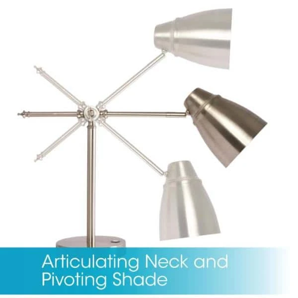 - Classic metal design with adjustable shade and counterbalance arm to lock lamp in desired position