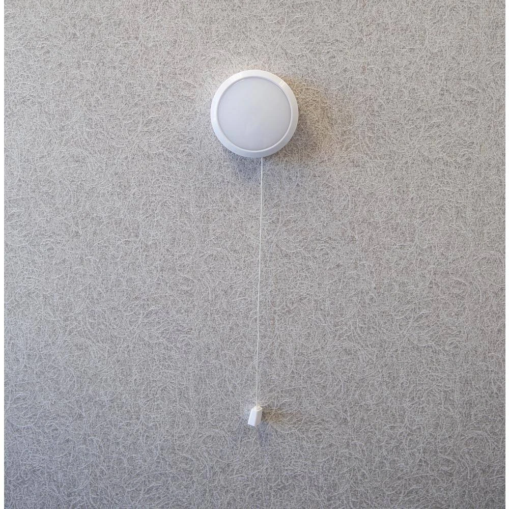 The perfect solution for that dark closet with no electricity, this battery operated LED Pull String Utility Light can add light to any dimly lit pantry, closet, or utility room in your hom. No wiring or bulb replacement necessary. Simply tap the light or use the pull string to turn the light on and off.