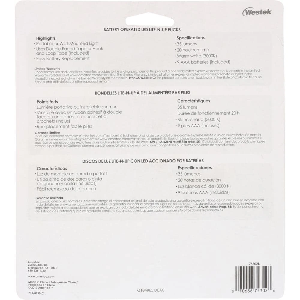 Amerelle Nite Lites and Specialty Lites bring safety, security and peace of mind to your home while adding a decorative touch. Amerelle LED lights work great for closets, pantries, under cabinets or anywhere light is needed for accent or tasks. Battery operated lights allows for versatile usage and light where and when you need it.