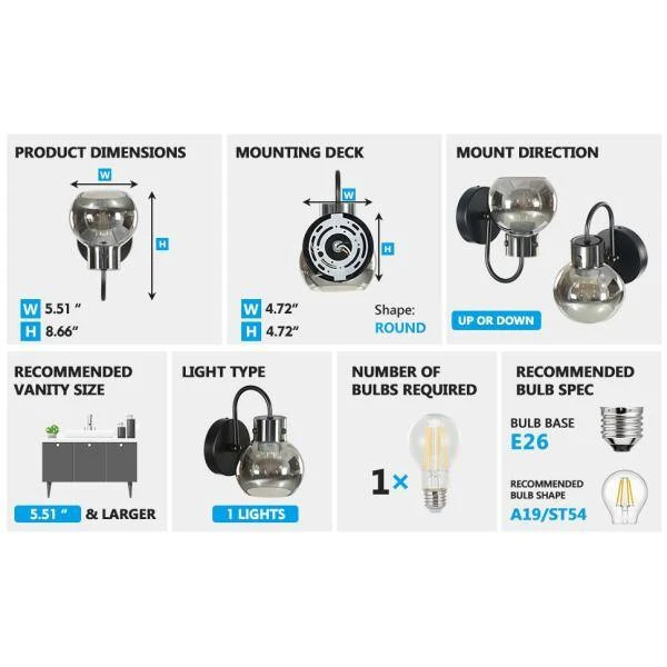 - Dimensions: the light fixture is 5.12 in. W x 7.87 in. D x 8.66 in. H, due to measurement error, the actual product’s size may be slightly different from the above values
