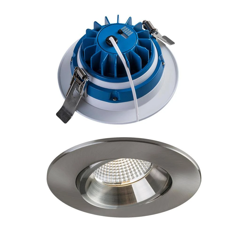 - 38° beam angle with quiet optics. 360° rotation, 30° tilt, 5 position CCT selectable switch