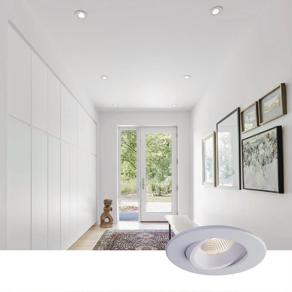 - 38° beam angle with quiet optics, 360° rotation, 30° tilt, 5-position CCT selectable switch