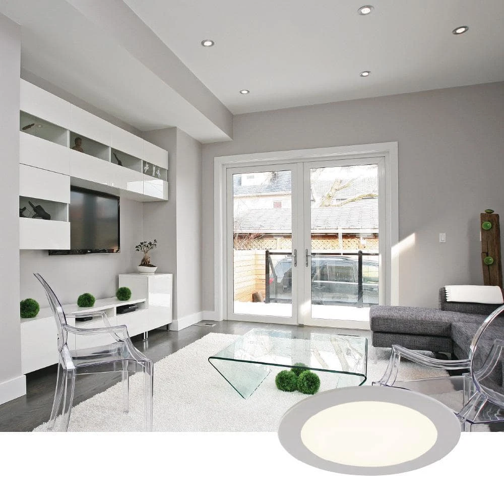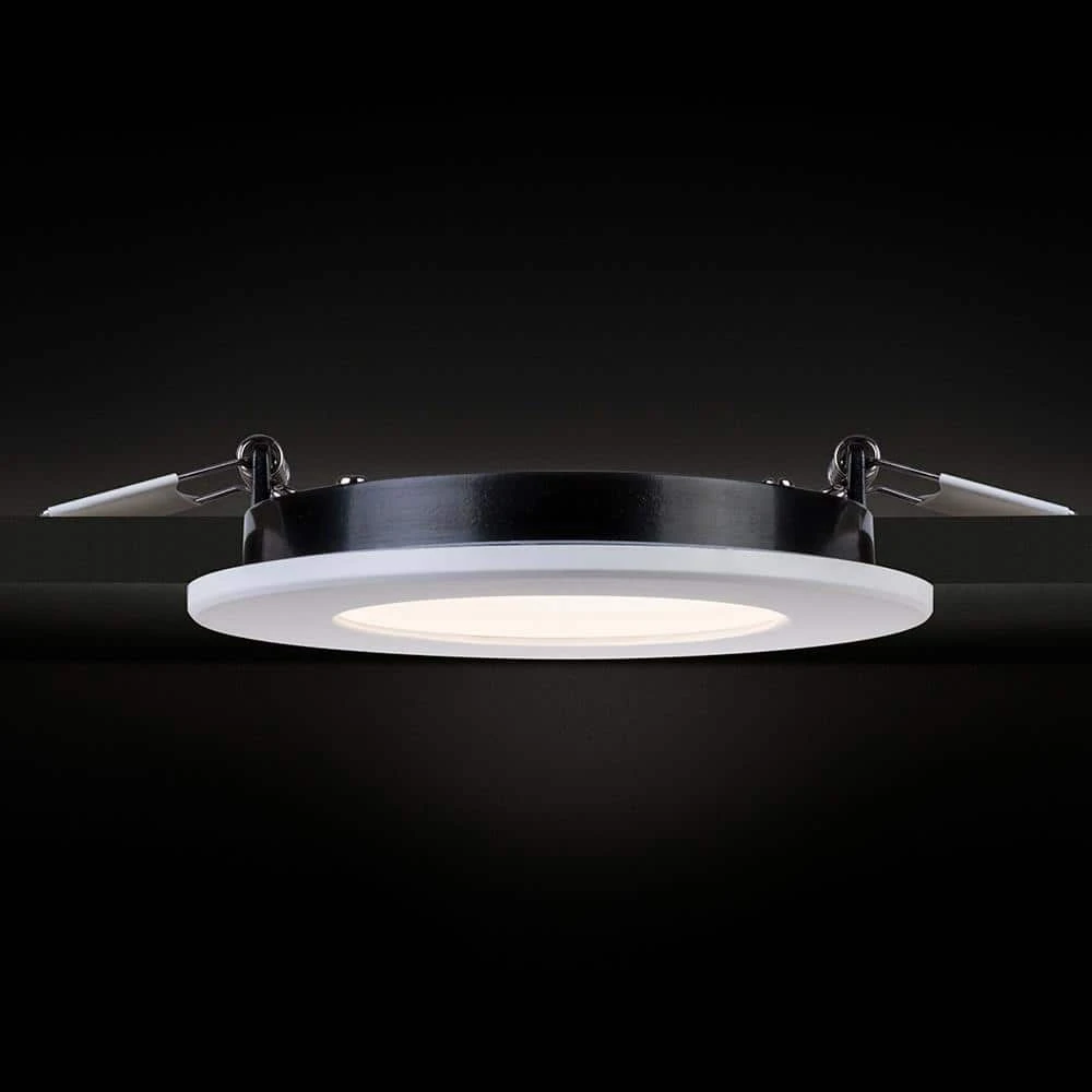 The 4 in. SPEX Lighting SLIM downlight features a 12-Watt round thin profile that fits perfectly in low plenum applications. A Selectable CCT, adjustable from below the ceiling (27K, 30K, 35K, 40K 50K) The magnetic trims allow for quick and easy interchanges between Black and Brushed Nickel (Sold Separately) No housing required, suitable for retrofit applications and wet locations. Quick connect push-in terminals for fast and easy wiring.