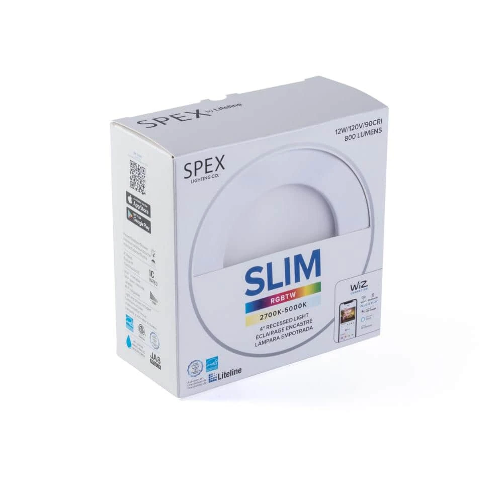 Connected by WiZ, the SPEX Lighting 4 in. SLIM downlight fixture is Wet Rated, delivers 800 Lumens in 12-Watt. Full Color and White Tuning (2700K – 5000K). with its thin profile it ideal for spaces with low above ceiling space. Control this Wi-Fi Fixture with either the SPEX Lighting Room Controller or WiZ App. Integrated it into your Smart Home Eco-system to work with Alexa, Google, Siri Shortcuts. SmartThings and IFTTT. Select Circadian Rhythms, Create your own Scenes or choose from Pre-set ones, Set Schedules or Vacation Mode to give you total control of the lights in your home. No Hub Required – Connects to a 2.4 GHz network.