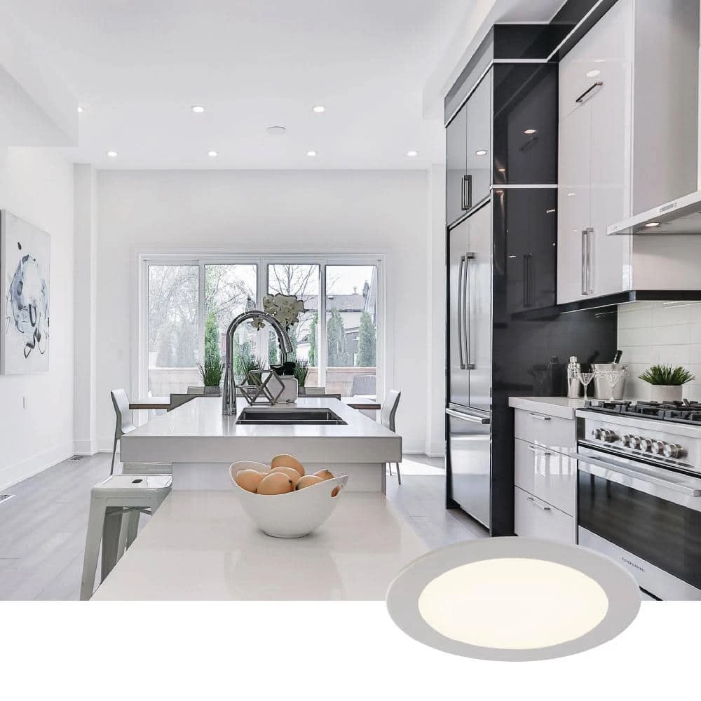 The 6 in. SPEX Lighting SLIM downlight features a 16-Watt round thin profile that fits perfectly in low plenum applications. A Selectable CCT, adjustable from below the ceiling (27K, 30K, 35K, 40K 50K) The magnetic trims allow for quick and easy interchanges between Black and Brushed Nickel (Sold Separately) No housing required, suitable for retrofit applications and wet locations. Quick connect push-in terminals for fast and easy wiring.