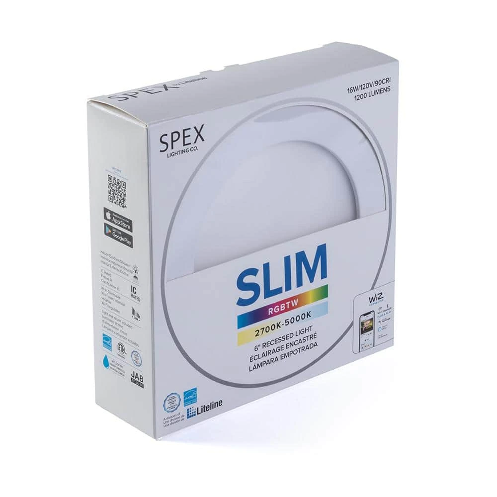 Connected by WiZ, the SPEX Lighting 6 in. SLIM downlight fixture is Wet Rated, delivers 1200 Lumens in 16-Watt. Full Color and White Tuning (2700K – 5000K). with its thin profile it ideal for spaces with low above ceiling space. Control this Wi-Fi Fixture with either the SPEX Lighting Room Controller or WiZ App. Integrated it into your Smart Home Eco-system to work with Alexa, Google, Siri Shortcuts. SmartThings and IFTTT. Select Circadian Rhythms, Create your own Scenes or choose from Pre-set ones, Set Schedules or Vacation Mode to give you total control of the lights in your home. No Hub Required – Connects to a 2.4 GHz network.